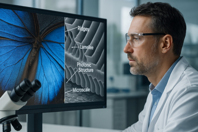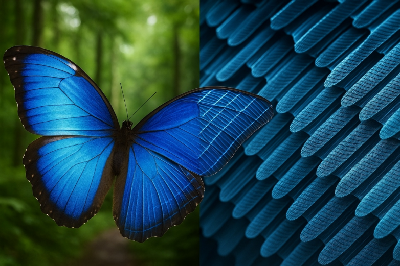林缝间,一抹电光掠过。蓝闪幻蝶的蓝,不是涂上去的颜料,而是“长”出来的秩序:翅面密布分叉微脊与层层薄腔,像微缩的光学器件,光线掠过时被精细地筛选与重排——短波被温柔放大,杂散被悄然按下,于是蓝色纯净、视角流动。自然在它的羽面上完成了一次关于“如何管理光”的示范:与其遮蔽,不如编排;与其对抗,不如让光各就其位。